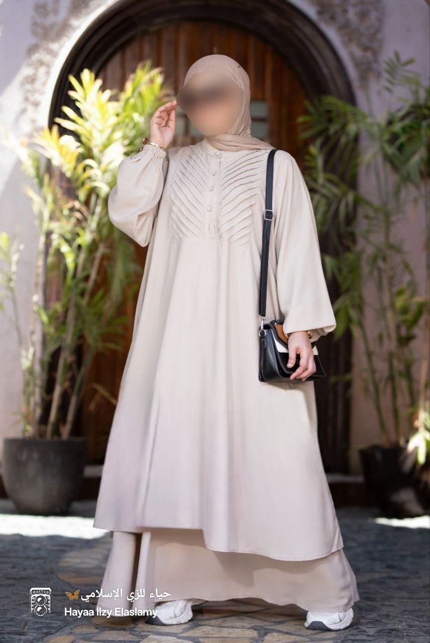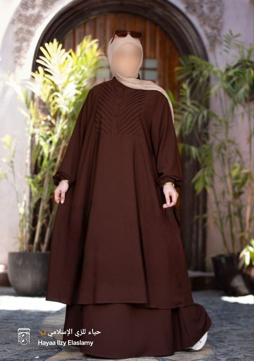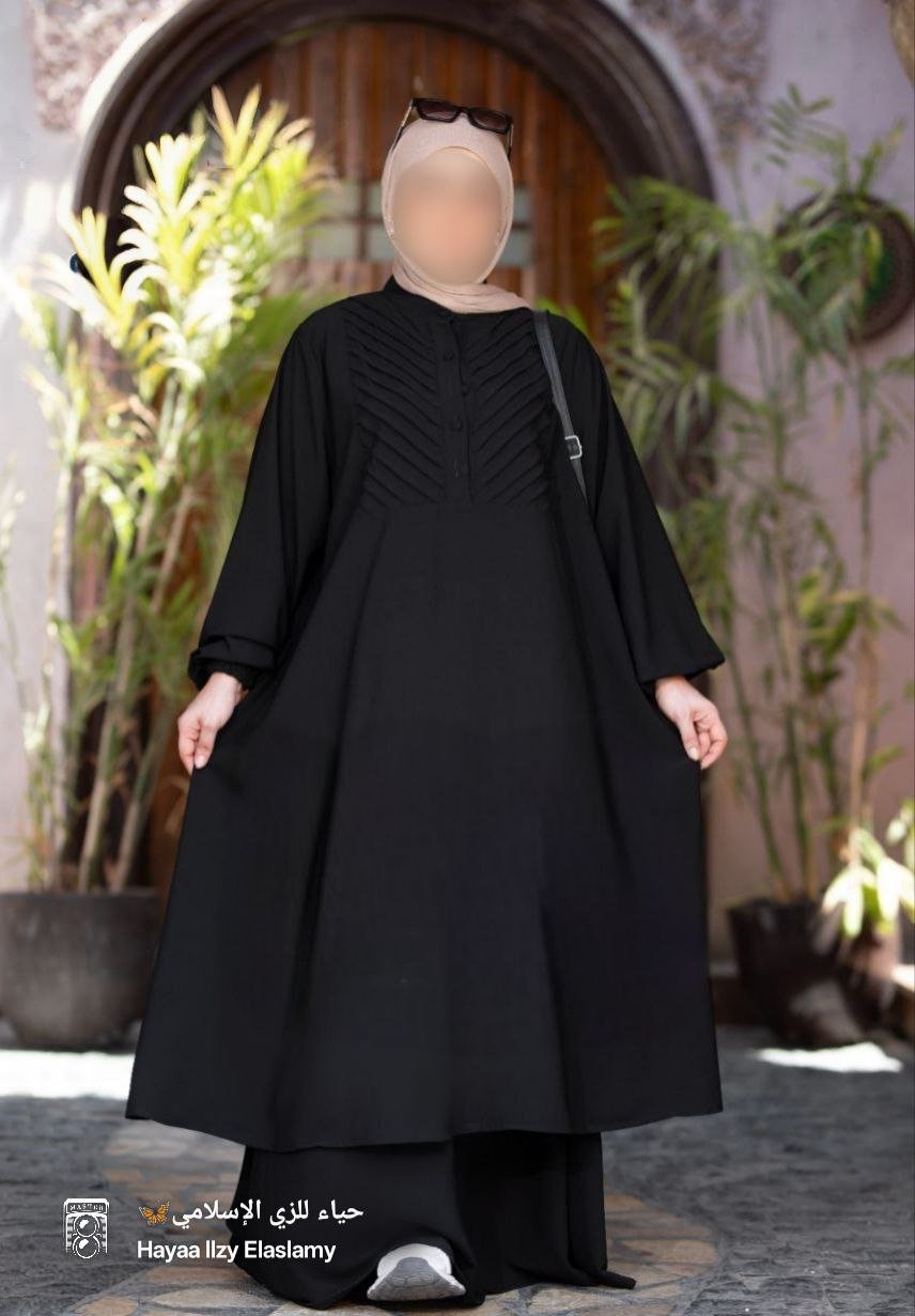 -طقم مكون من قطعتين ميني دريس واسع فضفاض راقي وجميل.. مزود بزراير أمامية لسهولة الارتداء.. جيبة أستك بنفس لون الادناء