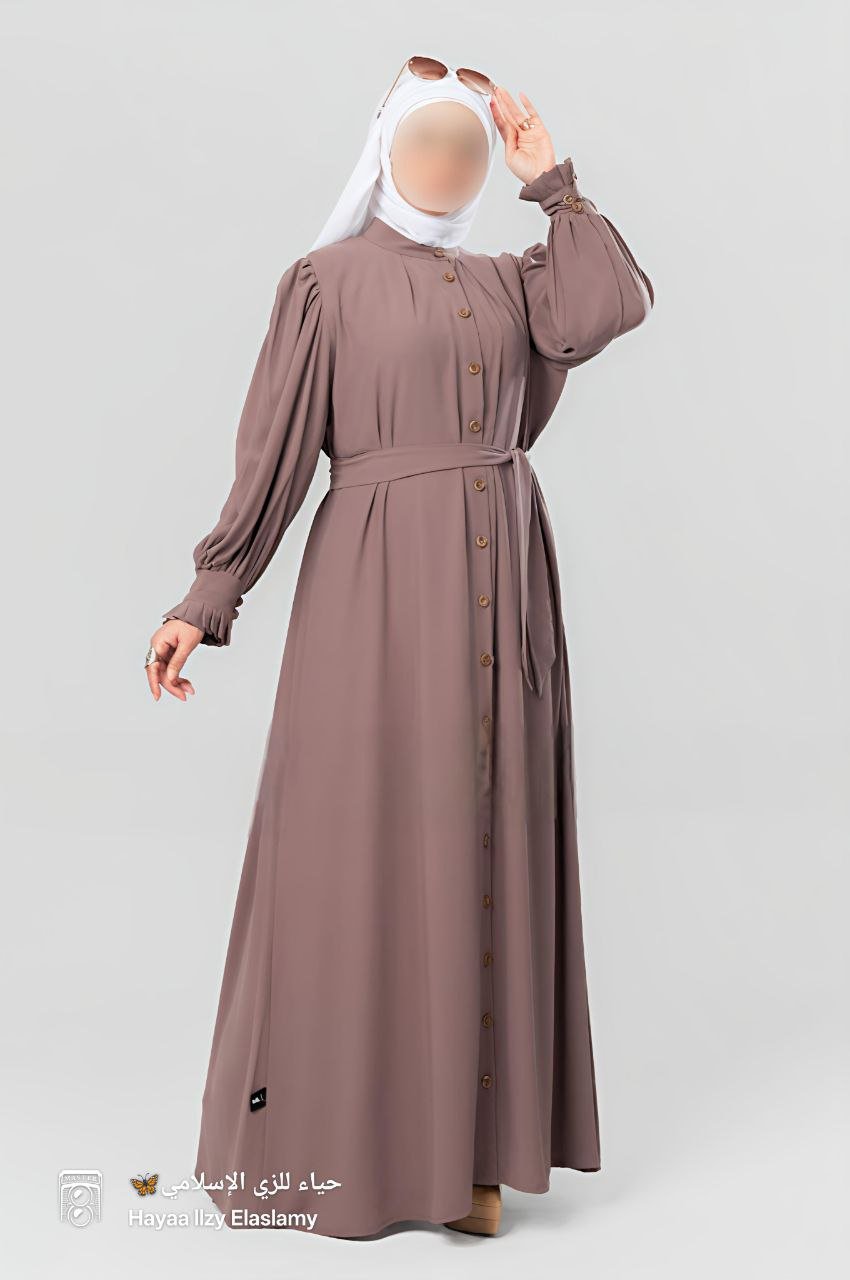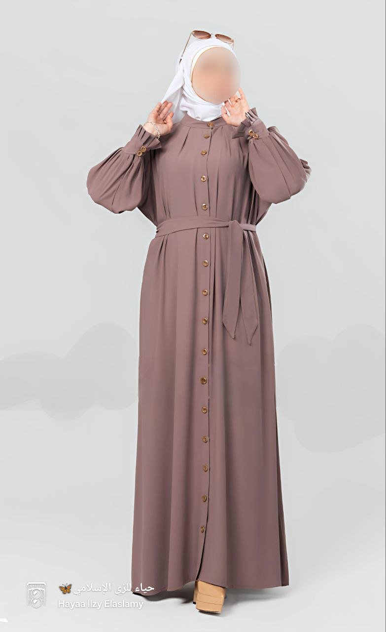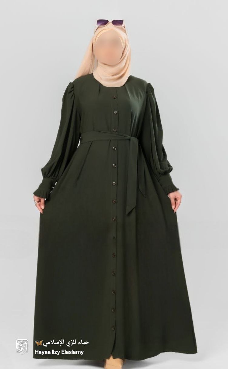 ازرار امامية بطول الفستان و اسورة بها كسر بزراير ، وحزام للتحكم ف وسع الموديل…❤️