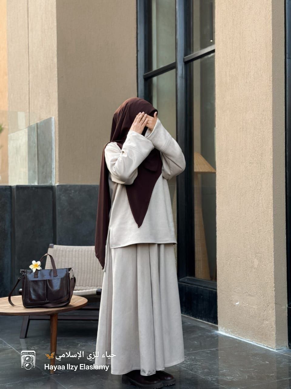 سوت قطعتين بديزاين سمبل جدًا كُم واسع رقيق الجيبة واسعة وفضفاضة مزودة بجيوب