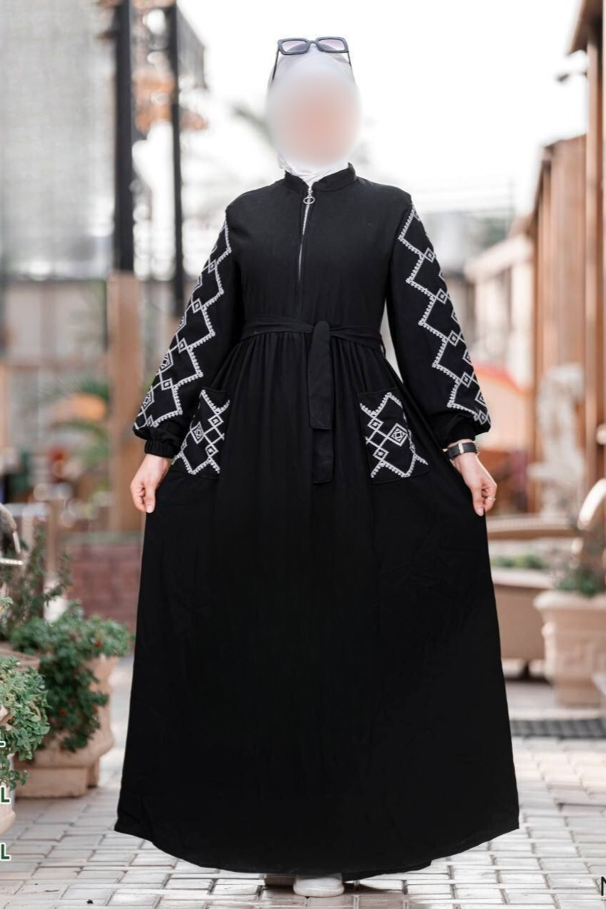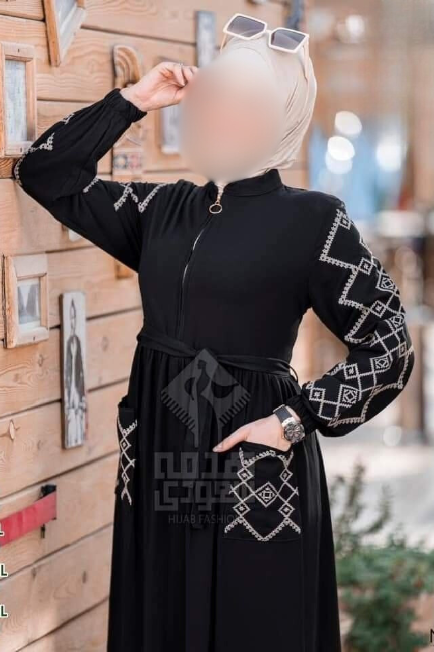 عبايه بكم استگ * تطريز علي الكتف* و الجيبين * سوسته اماميه * *حزام خارجي *