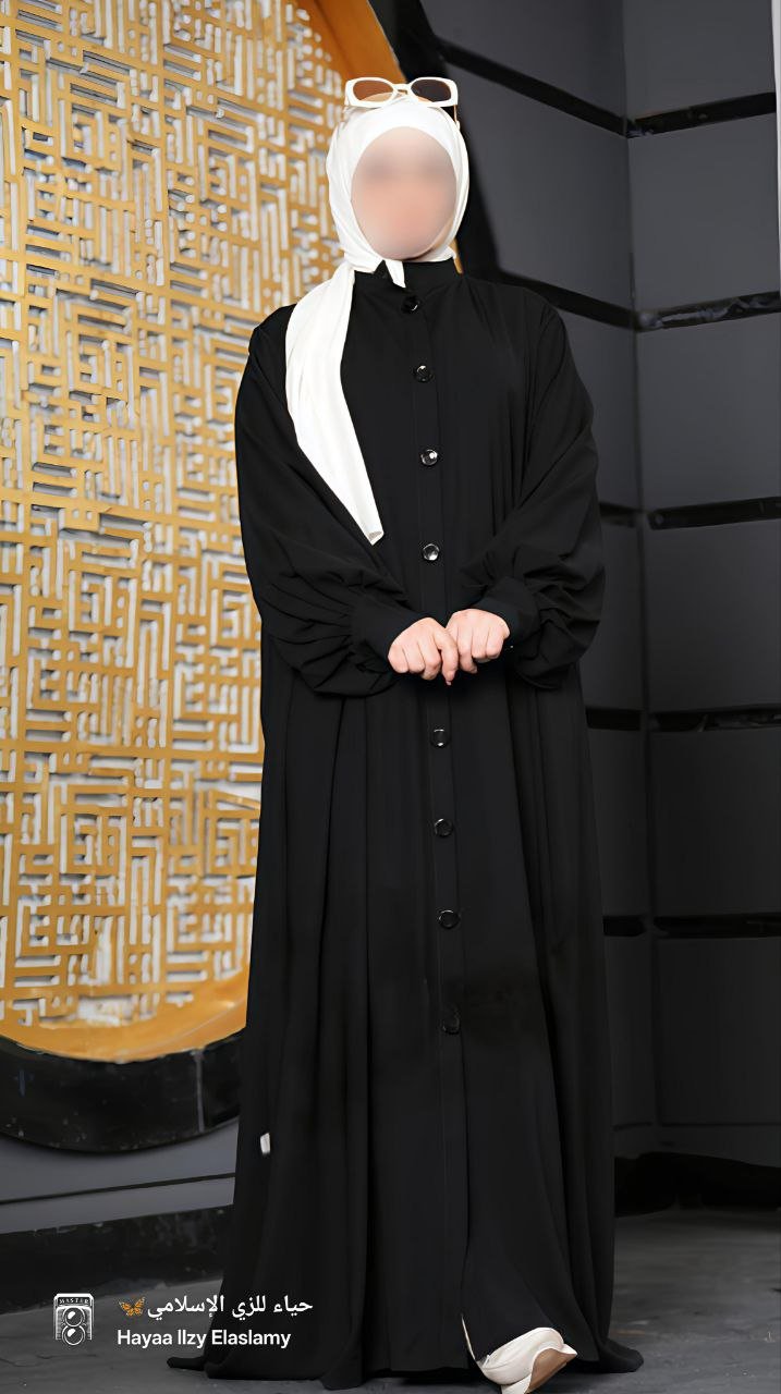 ‏عبايه باستايل خليجي نازله بانسيابيه و دبل كلوش مزوده بازرار بطول العباية واسوره ع اليدين