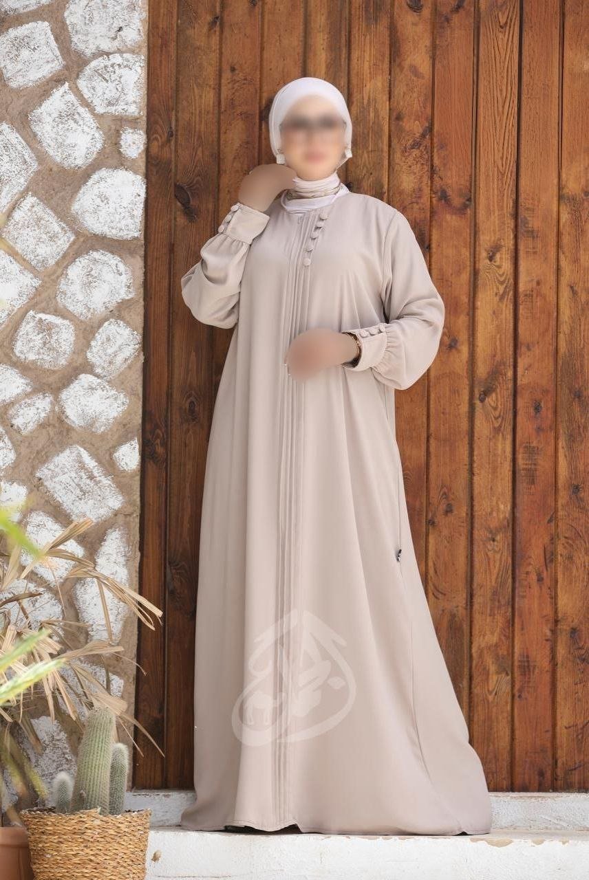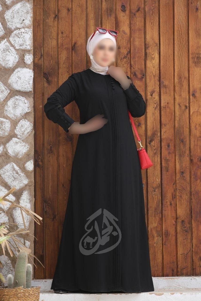 عبايه كريب زرار وبنس علي الصدر والاكمام